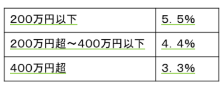 計算する際に注意したいのが、金額によって、乗じる税率が段階的に変化することです。たとえば、1000万円の物件を購入した場合の計算は、200万円×5.5%+200万円×4.4%+(1,000万円-400万円)×3.3%=39.6万円となります。