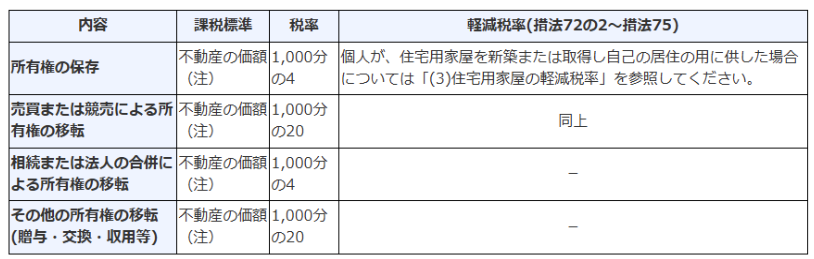 引用:国税庁「No.7191 登録免許税の税額表」